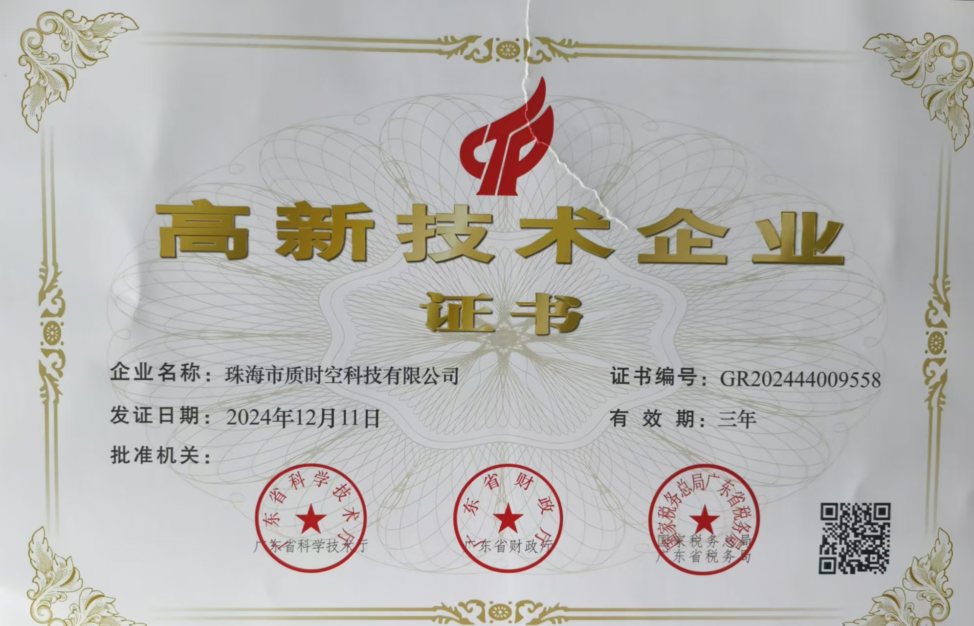 高新技术企业证书